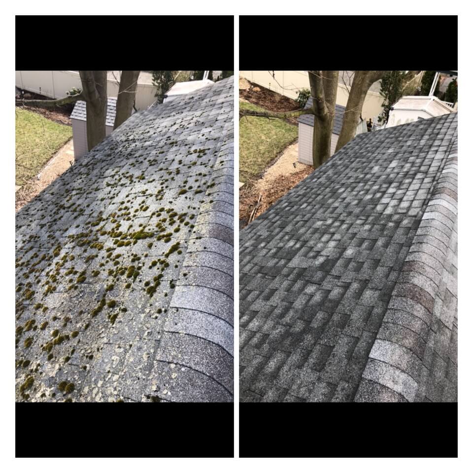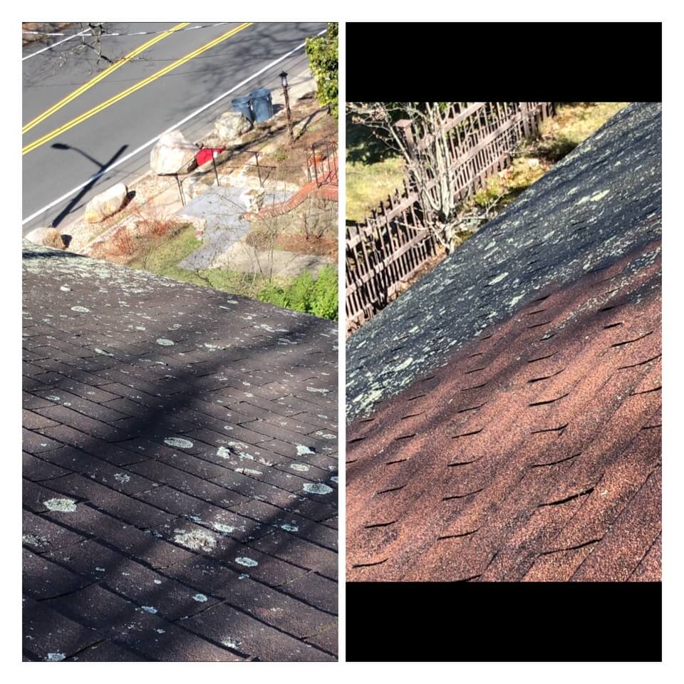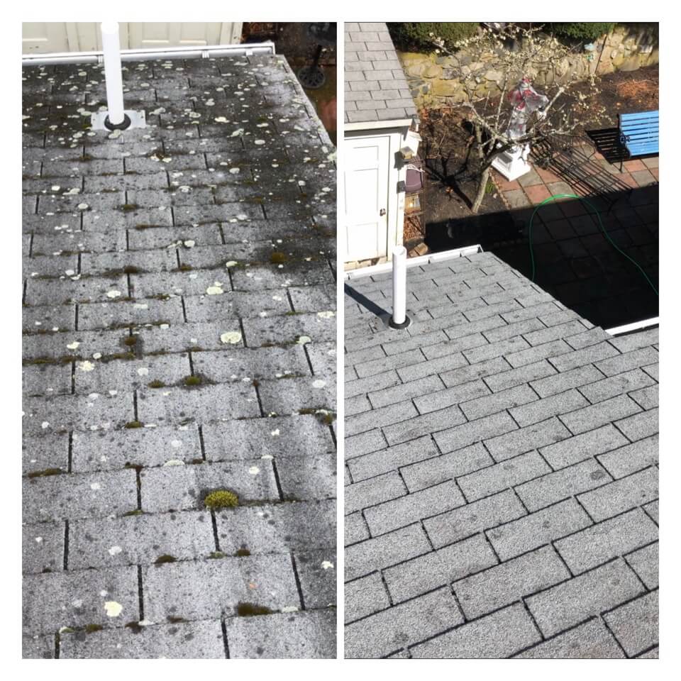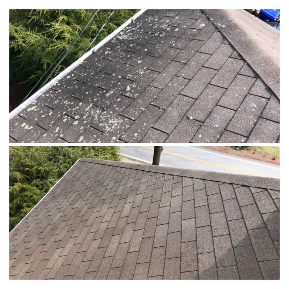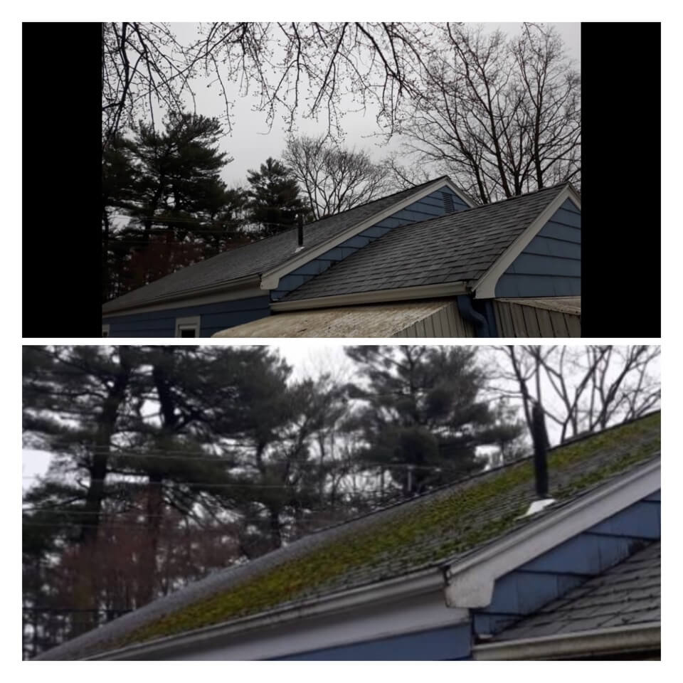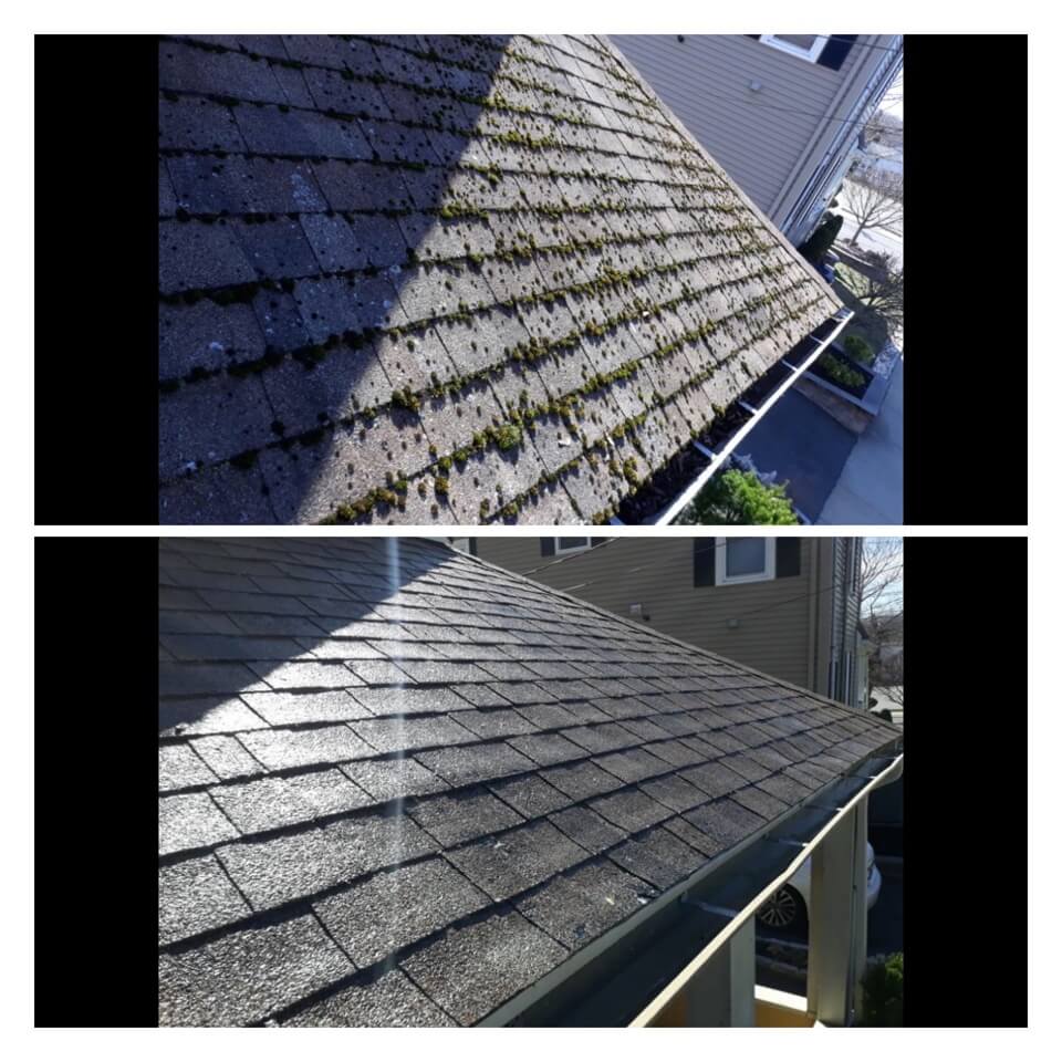 HiCleaners is the most experienced company in Groton, MA that deals with roof washing and roof soft washing. All of our employees are trained to recognize precise solution mixing ratios to provide you with the safest and most effective soft washing service. Roofs are a commonly neglected part of a house due to the fact that most people don’t have ladders to access it, so it is very easy to just leave it alone and forget about problems that may start to arise. Just like many home owners, discoloration and small bits of moss on a roof can be overlooked because of the misconception that it is just aesthetic. However, it isn’t just aesthetic, the moss slowly lifts the granules off the shingles which in turn shorten the life of the shingle. The moss also spreads, just like any bacteria if it is left alone for too long, it can quickly become a problem that spirals out of control. Call HiCleaners for a free quote, we only use the most advanced eco-friendly solutions and equipment to make sure the job is done right, for the safety of the employees, your plants, grass, pets, and children.